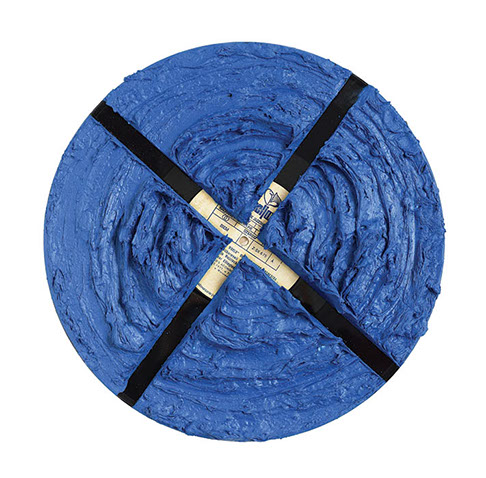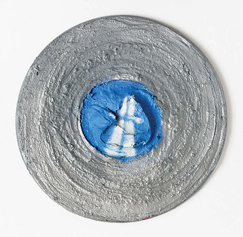 Modré X | Blue X kombinovaná technika na vinylu | conbination technique on vinyl | průměr 30 cm | 2015